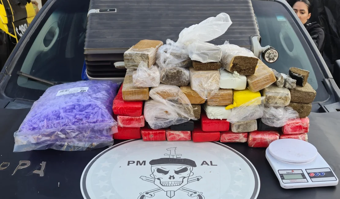 Uma guarnição do Pelopes, pertencente ao 3º Batalhão de Polícia Militar (BPM), conseguiu efetuar a prisão de dois homens e apreendeu quase 24 quilos de maconha. De acordo com o relatório da PM, a ação aconteceu aconteceu na quinta-feira (5), em uma residência localizada no conjunto residencial Brisa do Lago, no bairro Olho D’Água dos Cazuzinhas, em Arapiraca, no Agreste de Alagoas.