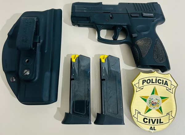 Dando continuidade às diligências, a Polícia Civil apreendeu, também nesta quarta-feira (11), a arma de fogo utilizada nas ameaças, uma pistola calibre 9 milímetros.