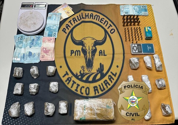 Durante a operação, os agentes apreenderam 1 quilo de maconha, diversas munições de calibres .38 e .22, uma balança de precisão e R$ 3.072,00 em espécie. A ação contou com a participação de policiais militares do 10º Batalhão e policiais civis da 5ª Delegacia Regional de Palmeira dos Índios.