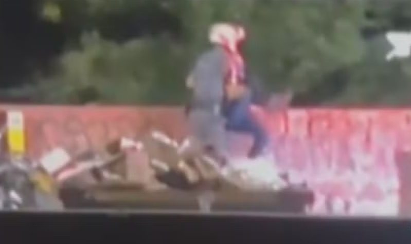 Vídeo mostra policial jogando homem do alto de uma ponte em SP — Foto: Reprodução/TV Globo