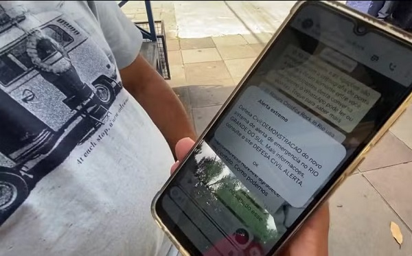 Aqueles alertas já conhecidos da Defesa Civil, como os que chegam via mensagem de texto, continuam valendo. O que muda é que esse se torna um último aviso de que uma situação extrema vai acontecer. Basta estar nas áreas de risco que a mensagem chega no celular.