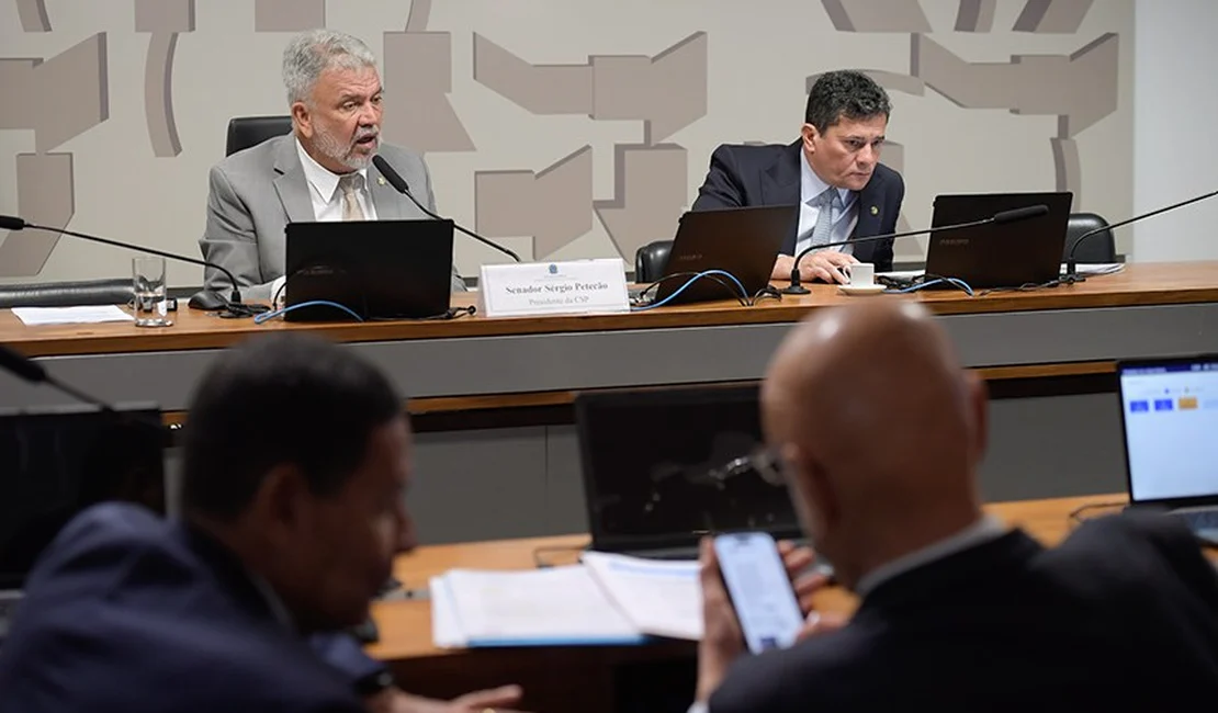 Os senadores Sérgio Petecão, presidente da comissão, e Sergio Moro na reunião da CSP - Foto: Saulo Cruz/Agência Senado