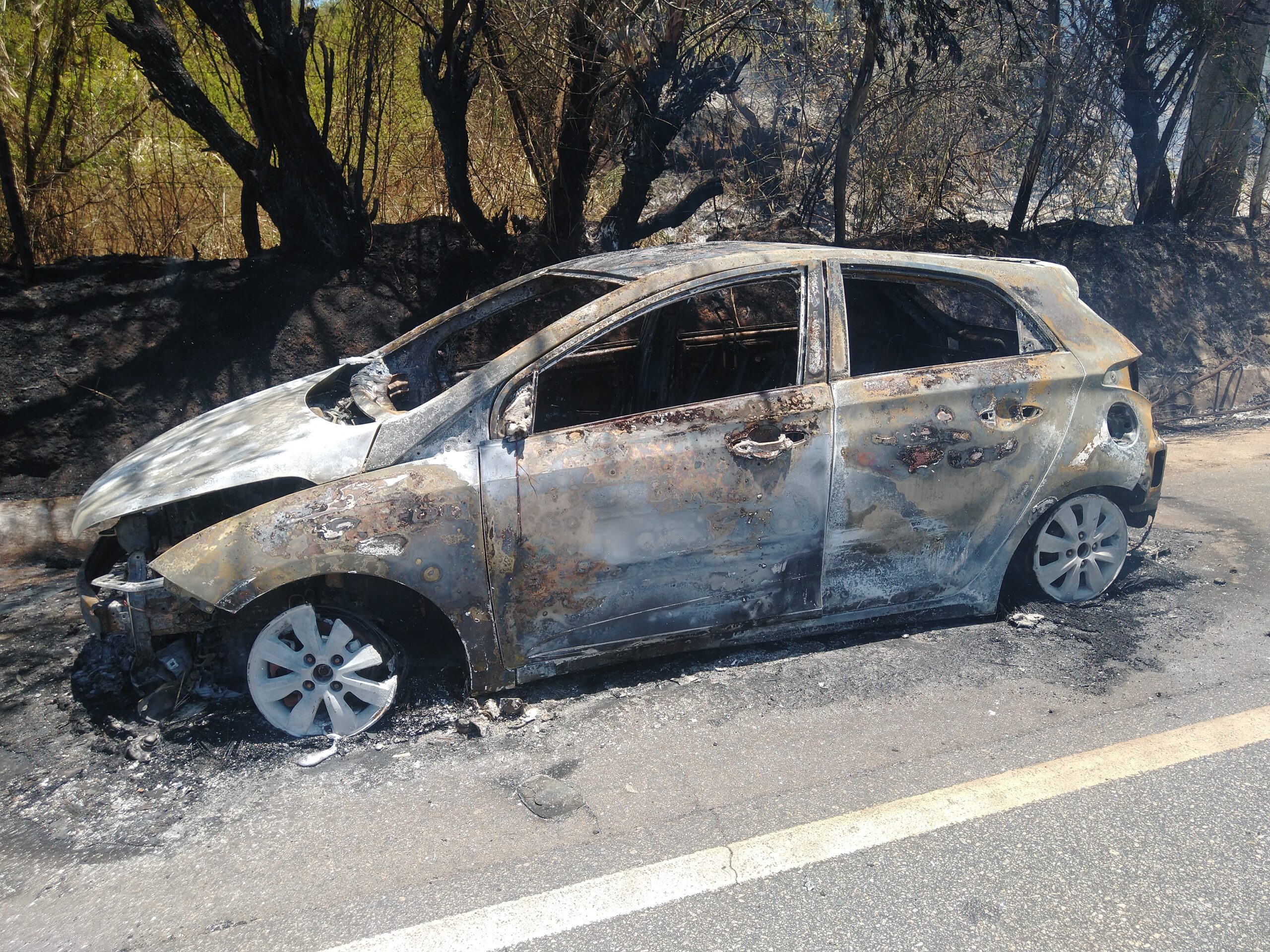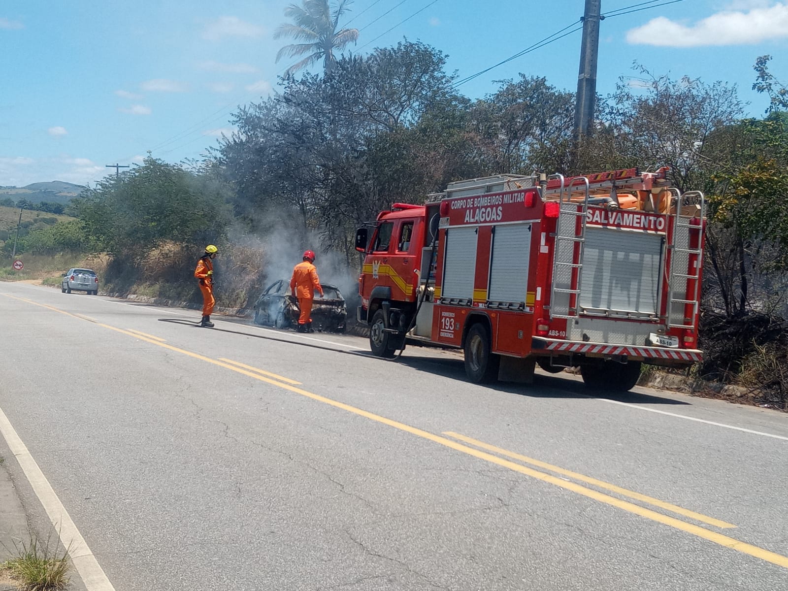 O Corpo de Bombeiros Militar (CBM) foi acionado por populares e esteve no local, para debelar as chamas. O fogo já havia passado para a vegetação presente ao lado do acostamento.