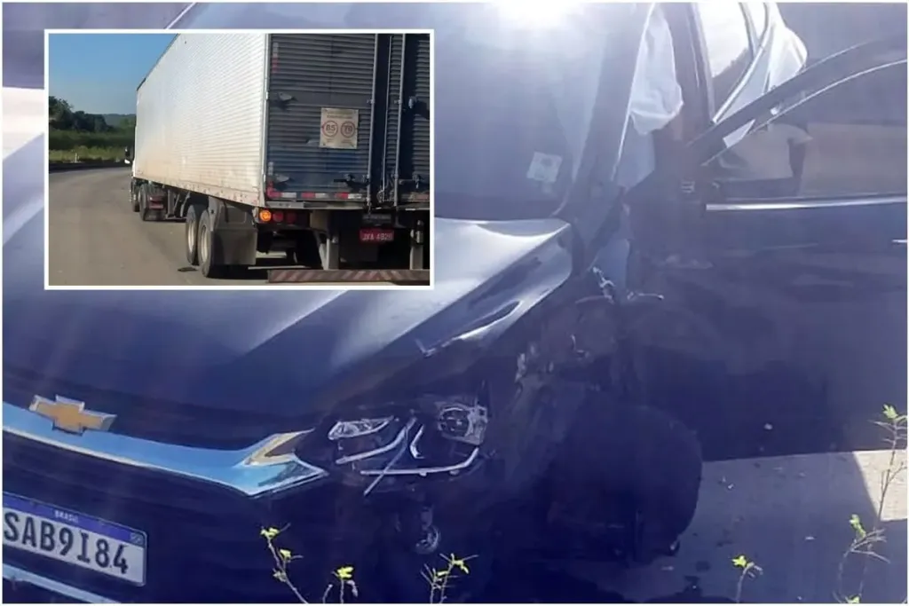 Segundo o que foi apurado no local do acidente, a médica teria cochilado e invadiu a pista contraria no trecho conhecido como ‘ladeira da Caeté’. O utilitário atingiu os pneus do veículo de carga e teve a parte dianteira/lateral destruída.