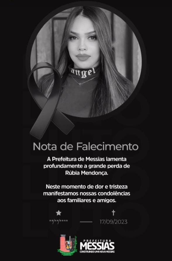 A Prefeitura de Messias emitiu nota lamentando a morte de Rubia Mendonça e se solidarizando com familiares e amigos da jovem.