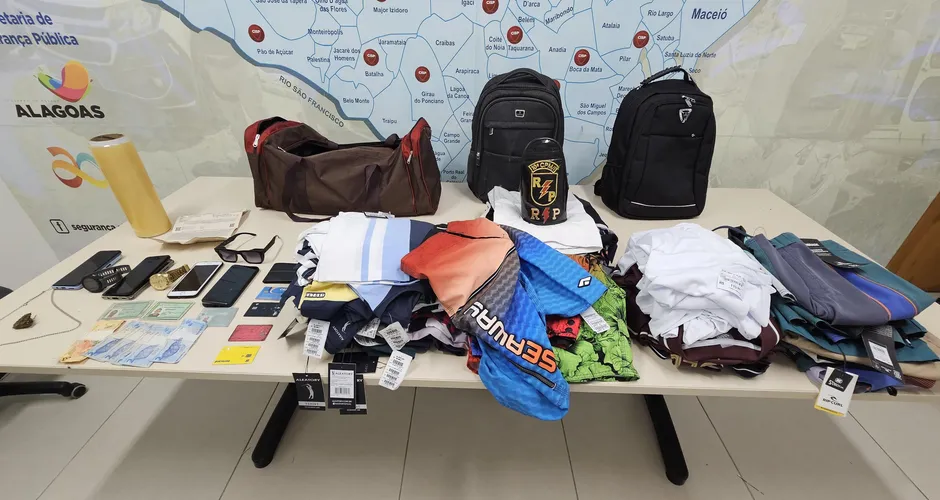 Trio suspeito em série de furtos a lojas e a um shopping em Maceió é preso em São Sebastião com R$ 16 mil em roupas