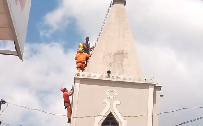 O homem, identificado apenas como Pedro, que havia subido na torre da igreja de Santo Antônio, desceu do local após quase 18 horas de negociações. A igreja fica localizada no bairro Cacimbas, em Arapiraca.