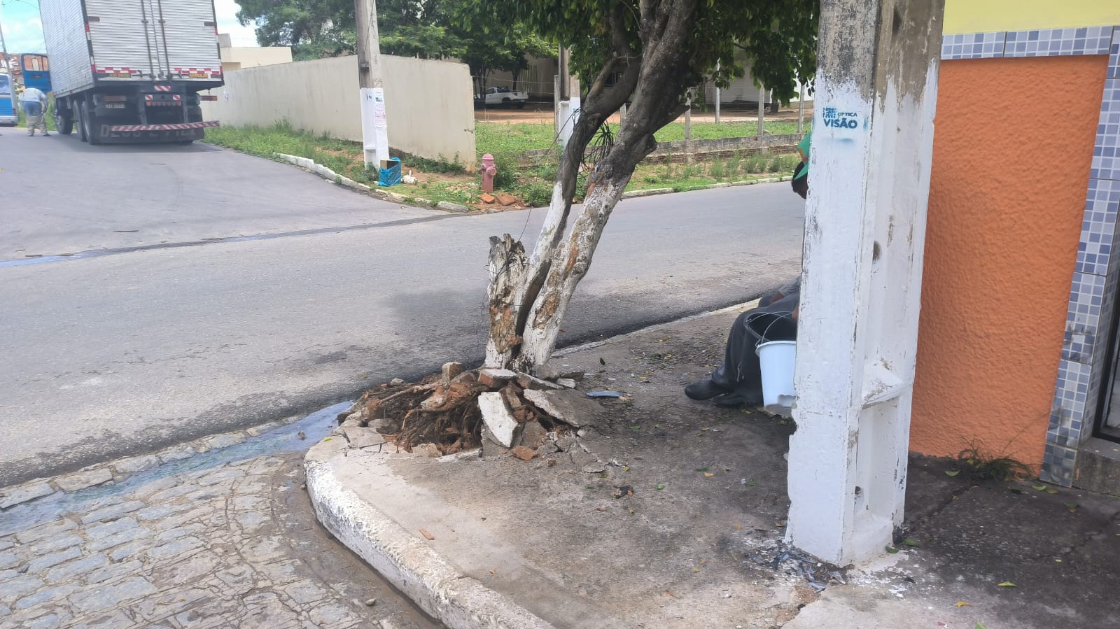 Em decorrência do acidente, a árvore ficou inclinada e parte da calçada foi danificada. Veja fotos e um vídeo da ocorrência logo abaixo.