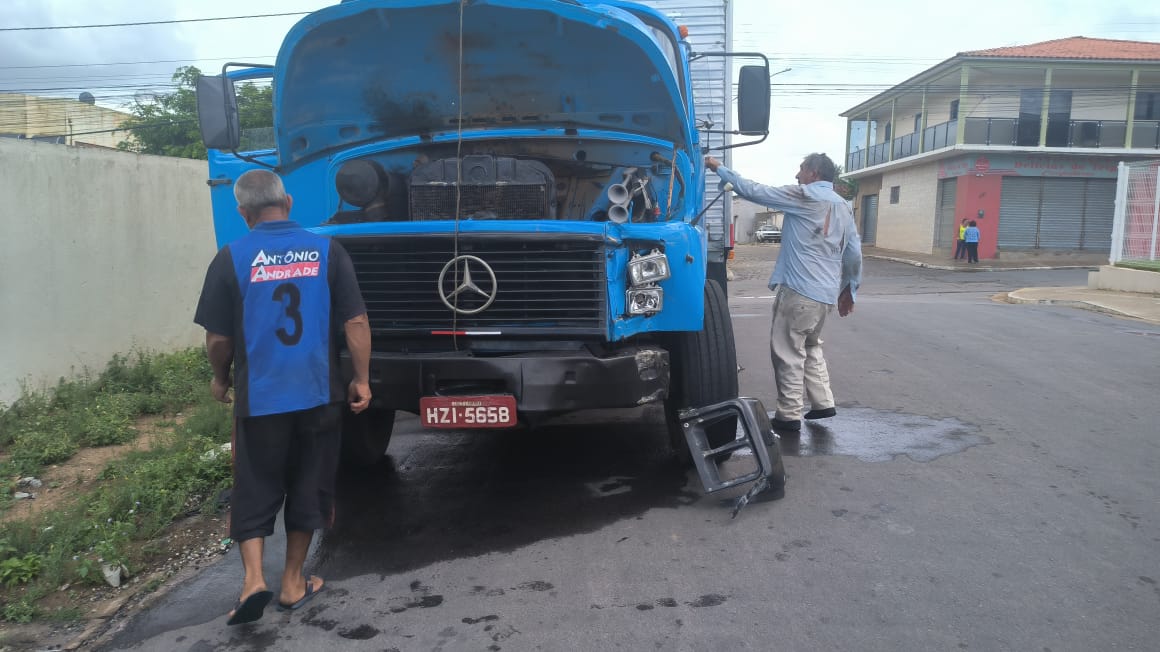 Caminhão que colidiu com a árvore, já depois de ser retirado do local | Foto: Victor Fernando
