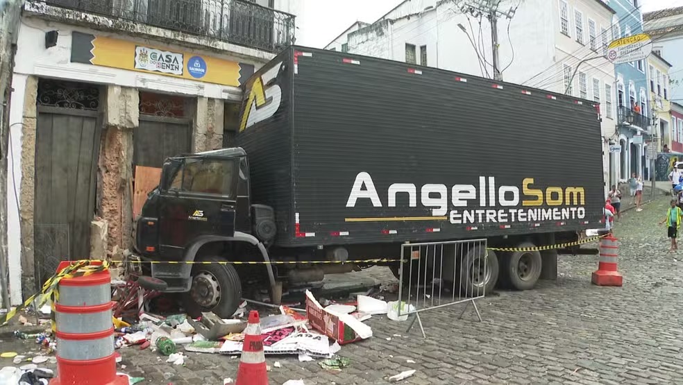 Um caminhão desgovernado atingiu barracas de ambulantes, isopores e a fachada do museu Casa do Benin, no Pelourinho, Centro Histórico de Salvador, na madrugada deste domingo (22). Apesar do susto, ninguém ficou ferido.
