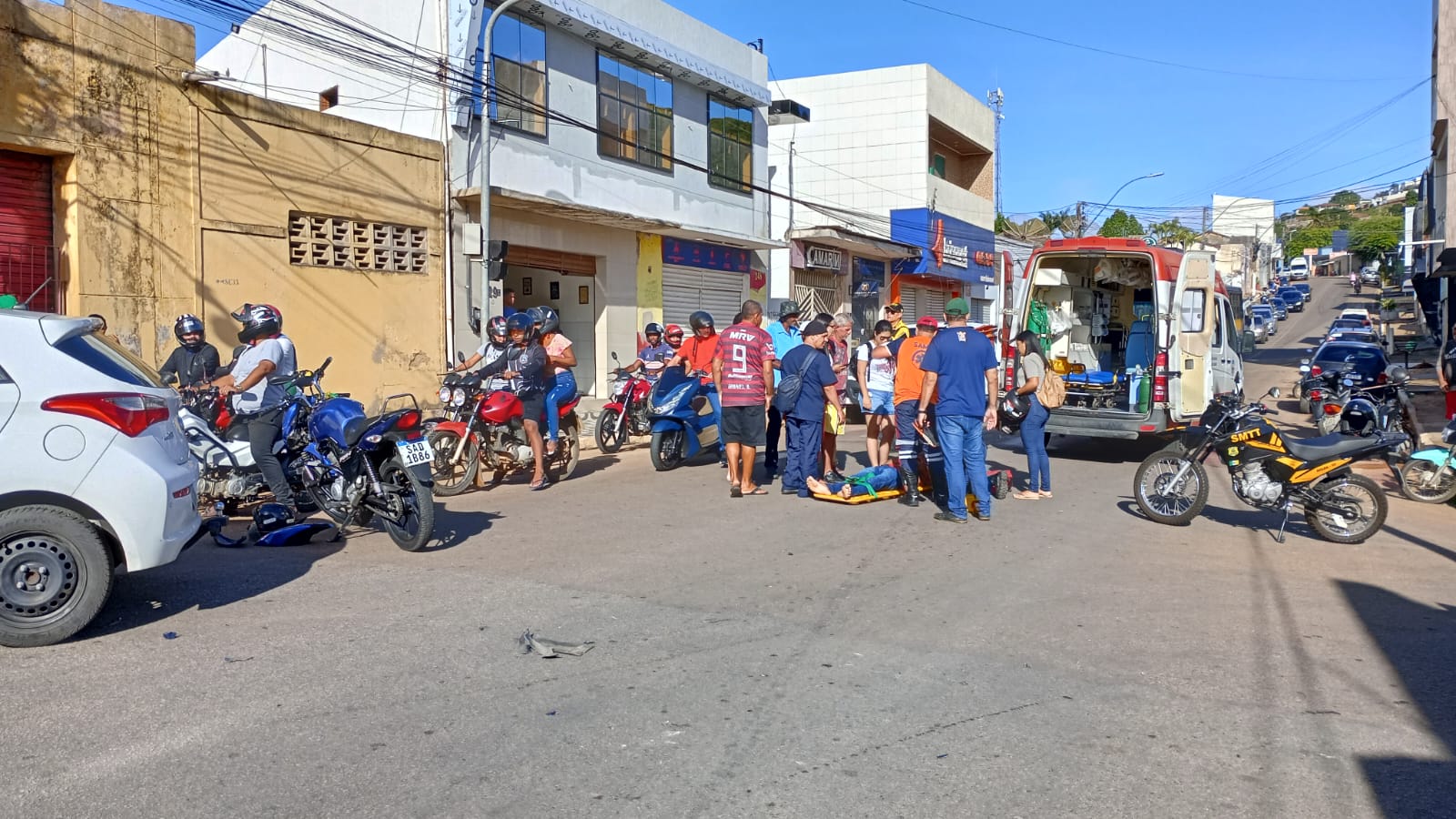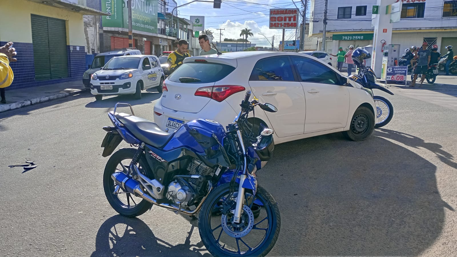 Na manhã desta terça-feira (29), um carro e uma motocicleta colidiram e deixaram um homem ferido, no cruzamento do posto José Amorim, na rua Pedro Soares da Mota, em Palmeira dos Índios. A moto bateu na lateral do carro, um Hyundai HB20, enquanto este seguia no sentido do Complexo Educacional Agostiniano.