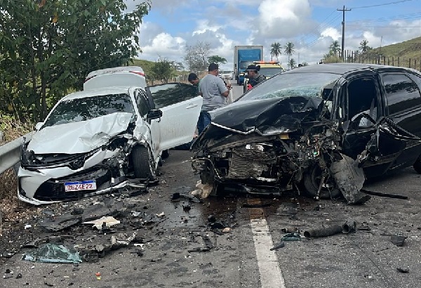 Uma colisão entre dois veículos deixou pelo menos três pessoas feridas na manhã desta quarta-feira (2), em um trecho da BR-316, em Maribondo.