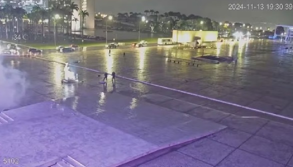 As imagens mostram o homem se aproximando da estátua da Justiça e jogando algo no monumento. Imediatamente, um segurança da Polícia Judiciária se aproxima e faz uma abordagem. Francisco, então, recua e lança artefatos explosivos em direção ao STF.