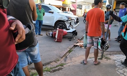 Uma colisão envolvendo uma motocicleta e uma Hilux foi registrada no final da tarde desta segunda-feira (9) na Avenida Vieira de Brito, em Palmeira dos Índios.