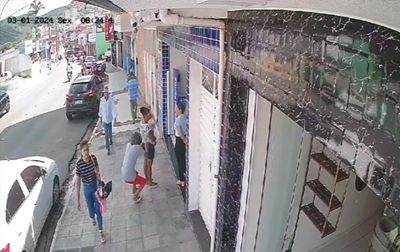 Imagens de câmeras de segurança flagraram o momento em que o ladrão se aproxima, percebe a distração da vítima e efetua o furto. A mulher, que estava conversando na frente de uma farmácia, só percebeu a presença do ladrão após ele pegar o celular e sair correndo.