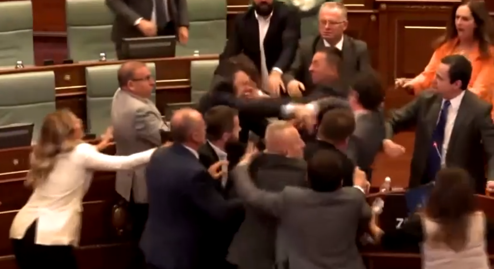 Na última quinta-feira (13), ocorreu uma briga entre figuras políticas presentes no Parlamento de Kosovo, na Península dos Balcãs, após um membro do partido de oposição ao governo jogar água no Primeiro-ministro Albin Kurtin, enquanto este discursava.