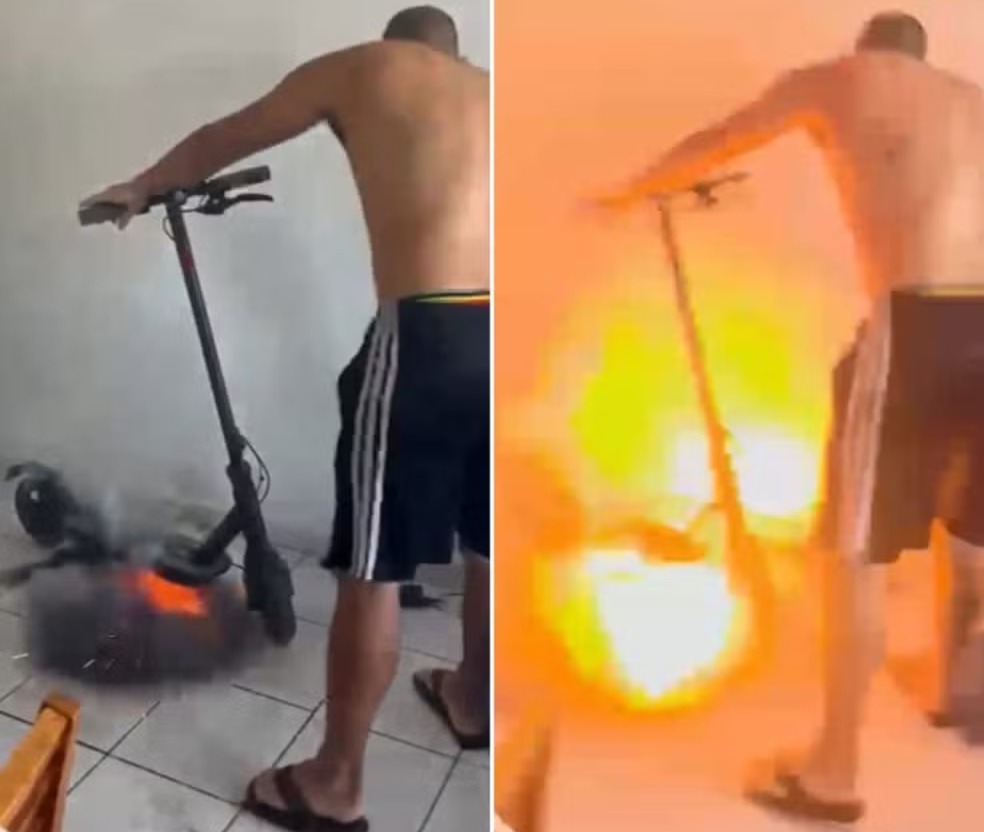 Um vídeo mostra o momento em que um patinete elétrico explode dentro de um apartamento nesta quinta-feira (23), no bairro Mangabeiras, em Maceió. Ao g1, o dono do equipamento, o fotógrafo Igor Couto, de 32 anos, disse que o patinete estava parado na sala, sem uso há quatro dias e não estava carregando no momento da explosão.