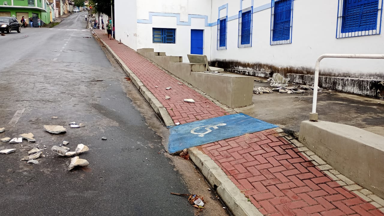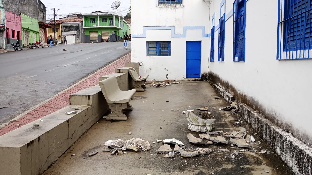 A praça do museu Xucurus foi alvo de vandalismo na manhã desta segunda-feira (9), no Centro de Palmeira dos Índios. O suspeito, um homem de 55 anos, identificado como José Inácio, quebrou bancos da praça e algumas caqueras.