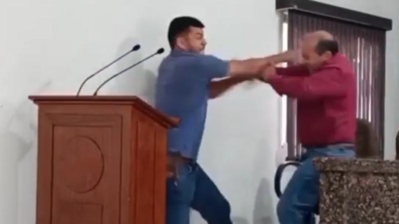 O embate verbal rapidamente evoluiu para agressões físicas, interrompendo a sessão. Cadeiras foram derrubadas durante o confronto, que só terminou com a intervenção de outros presentes.