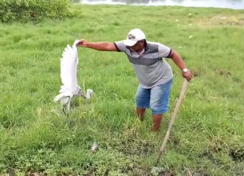 Garça torta nas imediações da Lagoa Mundaú | Imagem: reprodução